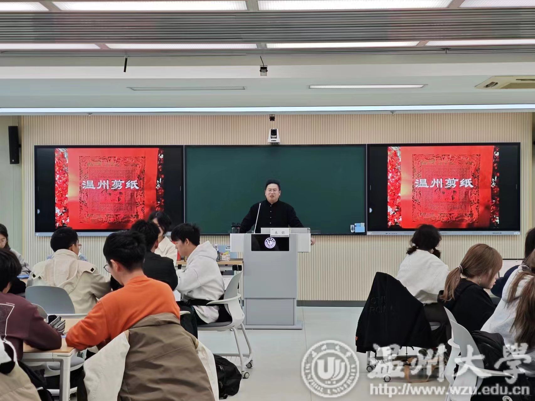 于3月20日在瓯6-324举办了第十四期步青讲坛——《探索温州非遗剪纸之旅》。本次讲座特邀温州市剪纸非遗传承人、温州市民俗协会副会长朱铭老师主讲,为广大师生们带来了一次精彩绝伦的剪纸艺术盛宴。