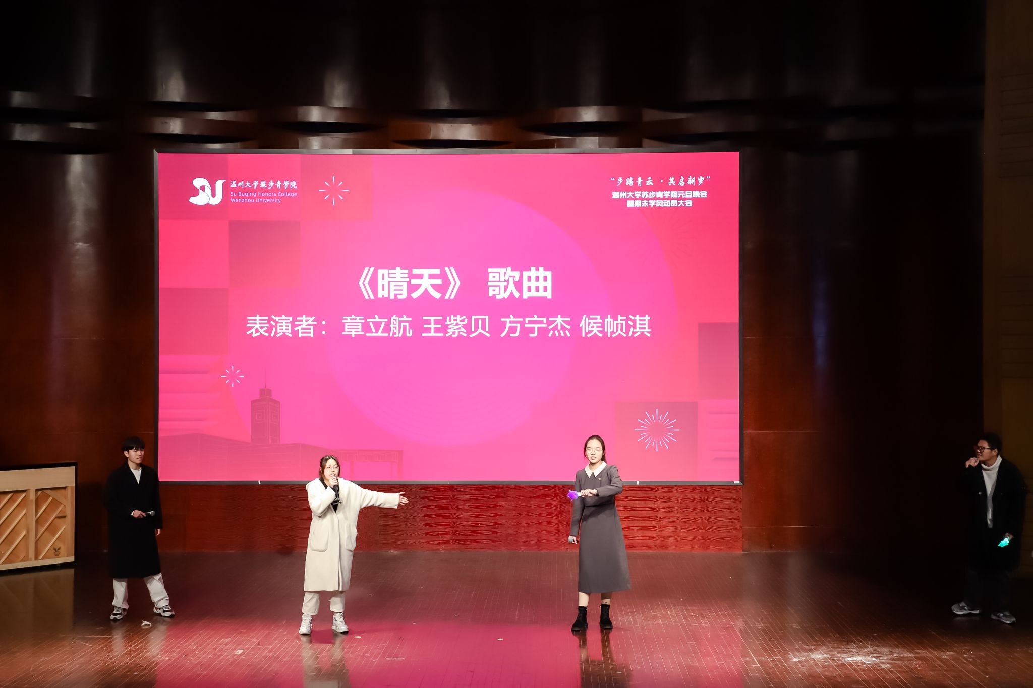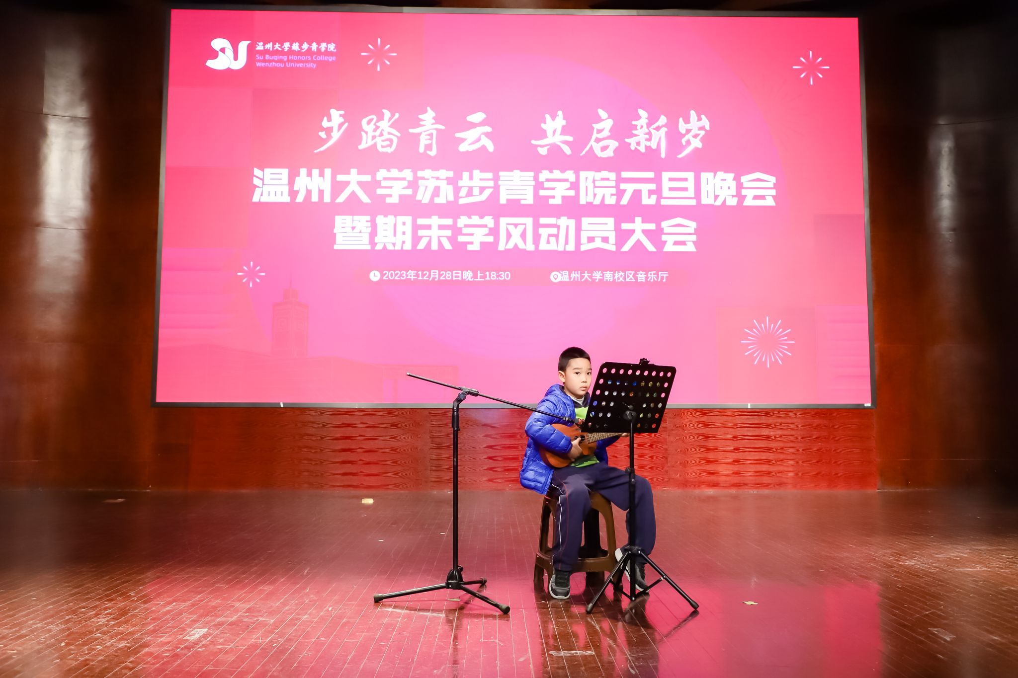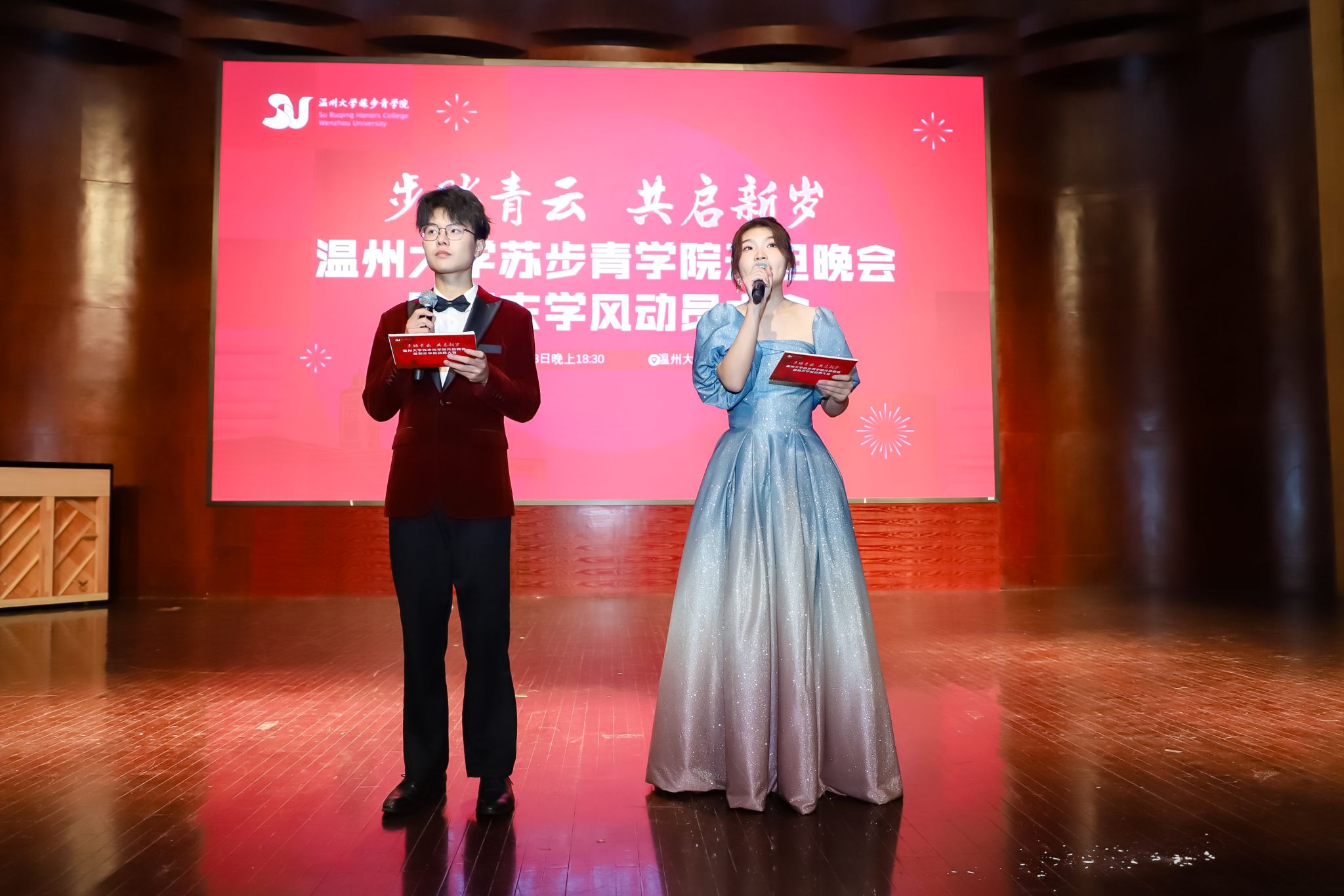 在温州大学南校音乐厅隆重举办了“步踏青云,共启新发”元旦晚会暨期末学风动员大会。