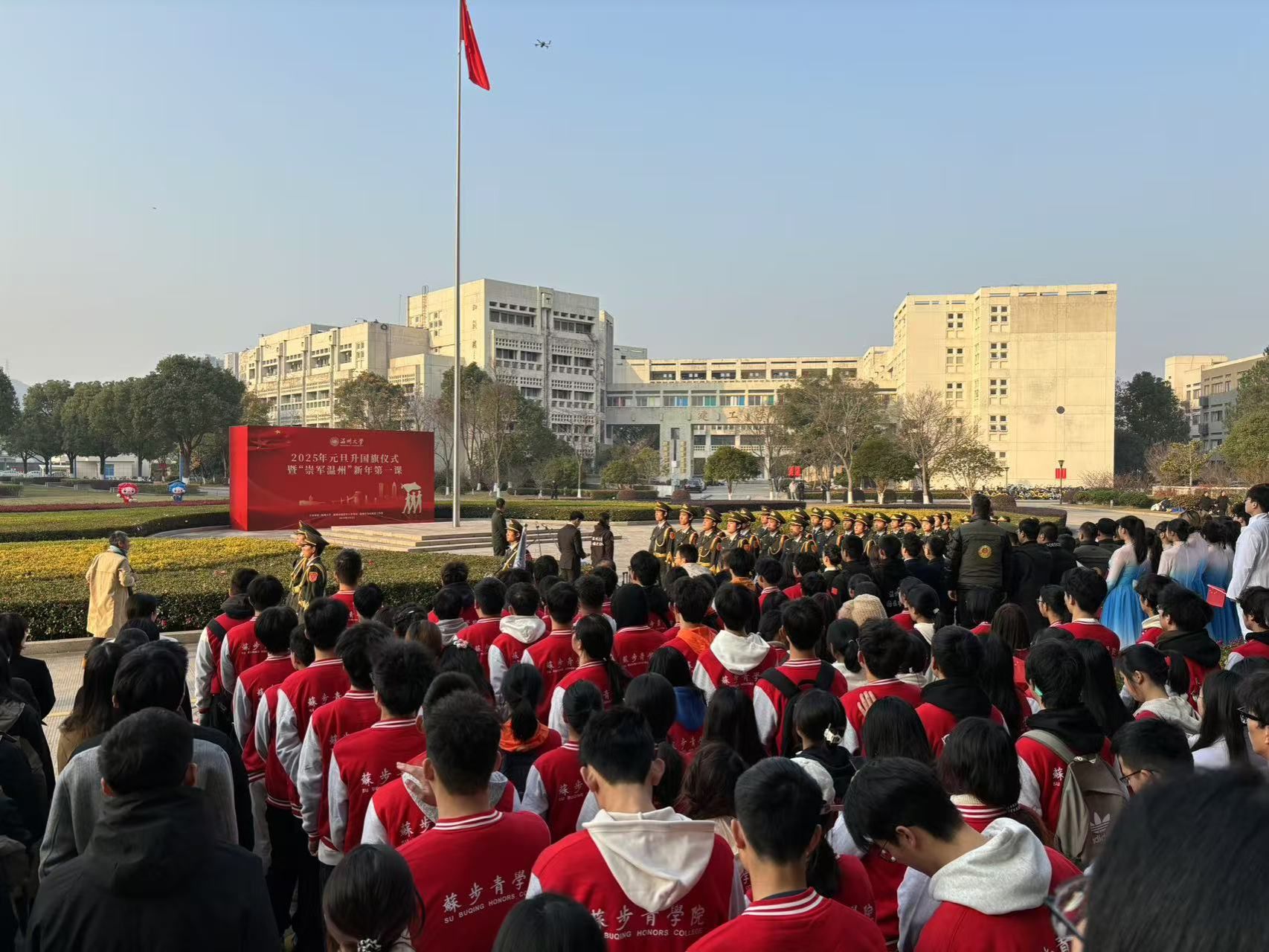 清晨8点,全院学生齐聚温州大学南校区行政楼前,参加2025年新年第一课暨元旦升国旗仪式。寒冬的清晨,现场却洋溢着温暖的氛围。随着庄严的国歌声响起,五星红旗在全体师生的注目下冉冉升起。
