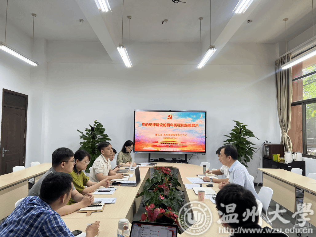党总支书记潘从义以《党的纪律建设的百年历程和经验启示”》为题,讲授党纪学习教育专题党课,全体教职工党员参加。