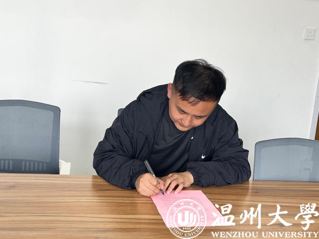 最后,全员教职工共同签署《温州大学师德师风承诺书》。承诺书要求全体教师进一步提高自我认识,认真贯彻落实国家关于师德师风建设的要求,严格遵守《新时代高校教师职业行为十项准则》,努力做到言传身教,以身作则,用自己的行动引导学生,为学生树立正确的师范形象,成为一名有理想信念、有道德情操、有扎实学识、有仁爱之心的人民教师。