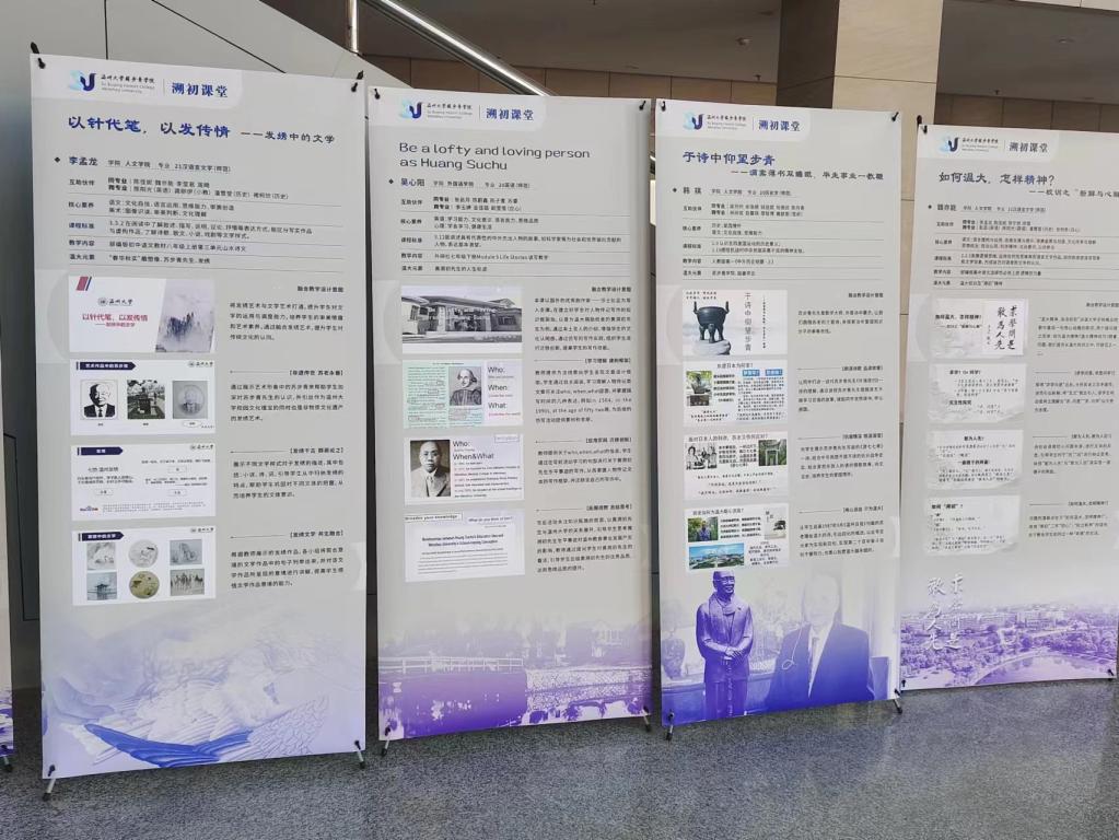 此次设计展特以校庆为主题,由温州大学教师教育溯初实验班负责人胡珏老师指导,在第十四、十五期教师教育溯初实验班开展跨学科融合教学设计活动,引导学子们将温大元素融于教育教学实操之中,使先贤遗风现于生命教育画卷之上,让文化育人落在课堂教学主渠道之内。