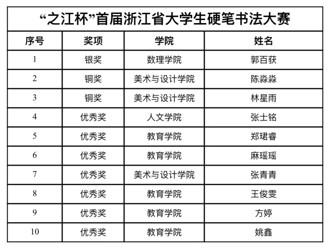 指导,浙江省硬笔书法家协会主办的“激扬青春 活力浙江”之江杯首届浙江省大学生硬笔书法大赛获奖作品展在浙江图书馆开幕。温州大学以香港六合彩官网资料