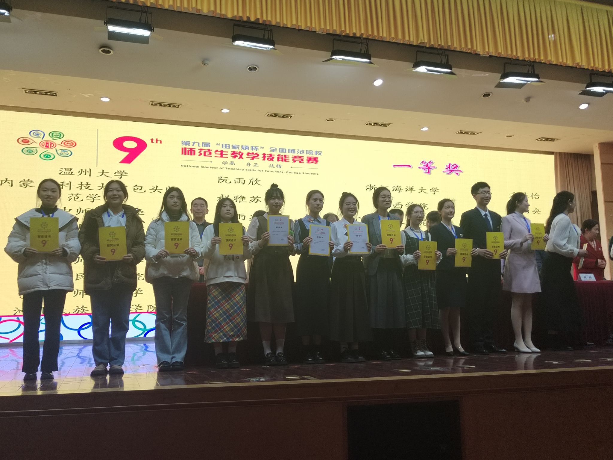 2023年12月29-31日,第九届“田家炳杯”全国师范院校师范生教学技能竞赛决赛在浙江师范大学举办。本次大赛全国共226所高校1611名选手参赛,我校共有10名选手参赛,获一等奖4项、二等奖1项、三等奖5项,一等奖数全国排名第六。