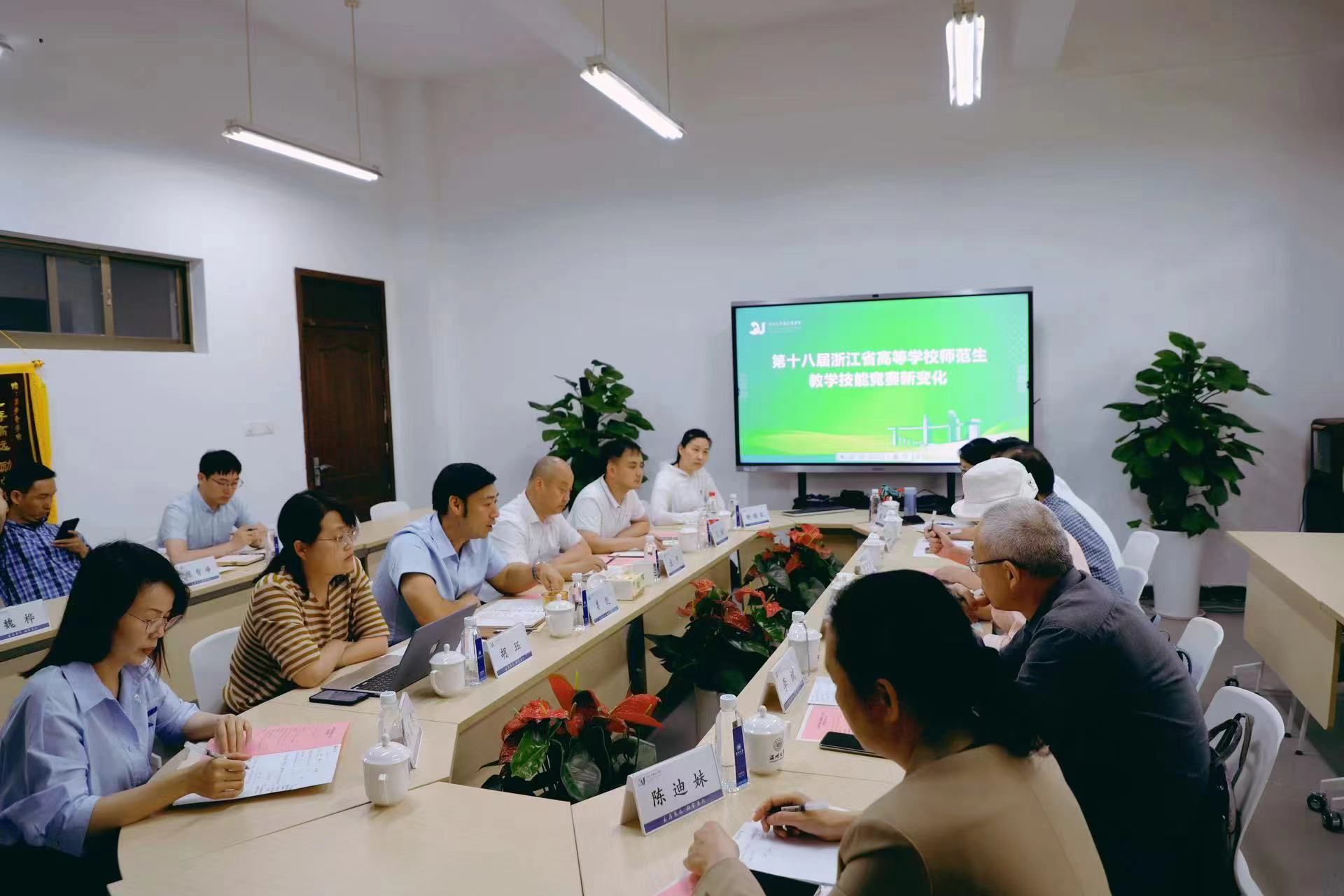 姜锐传达了浙江省高等学校师范生教学竞赛组委会关于第十八届竞赛工作精神,介绍了赛事的新变化,充分肯定了教学法老师在师范卓越人才培养工作上的辛勤付出。