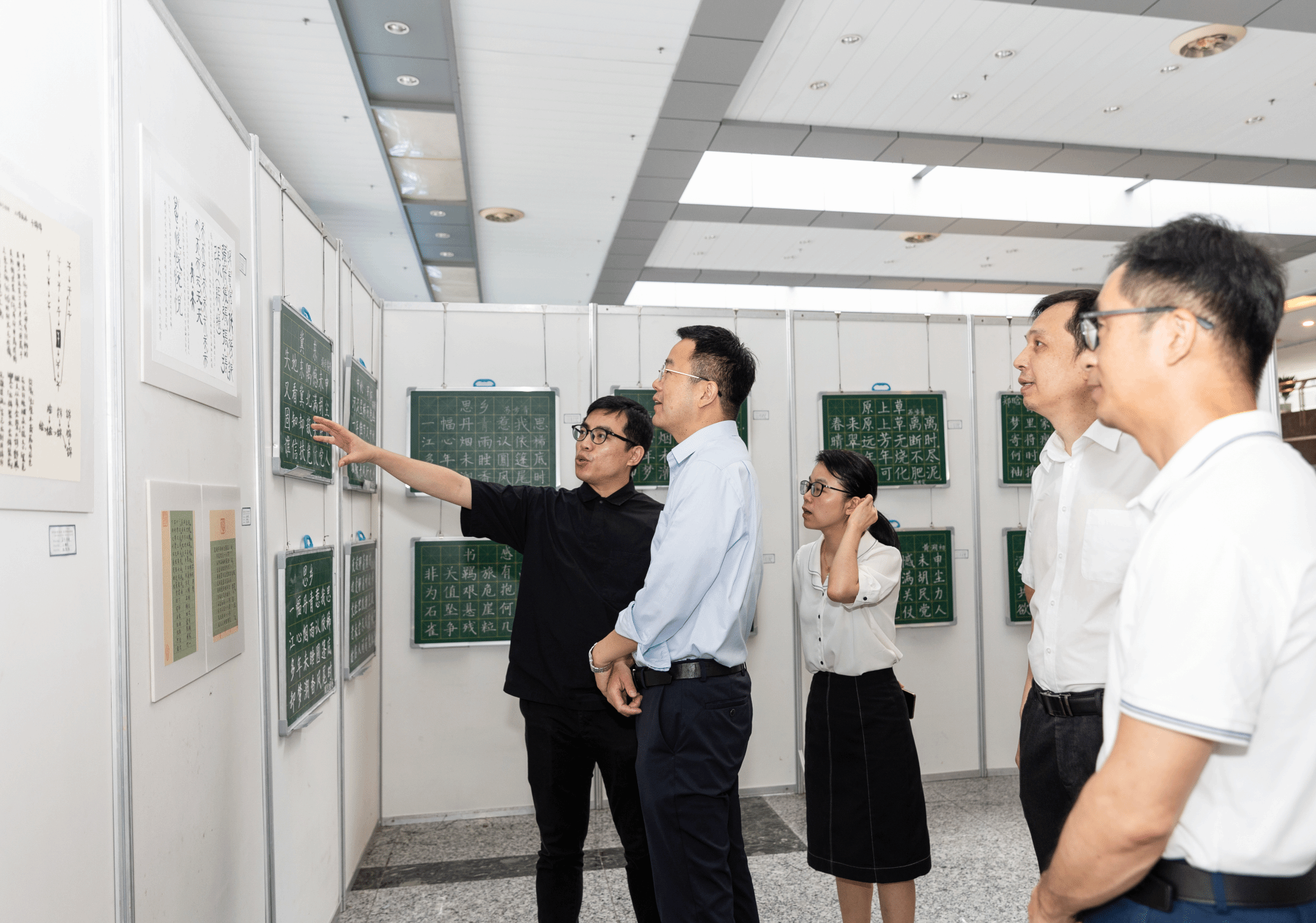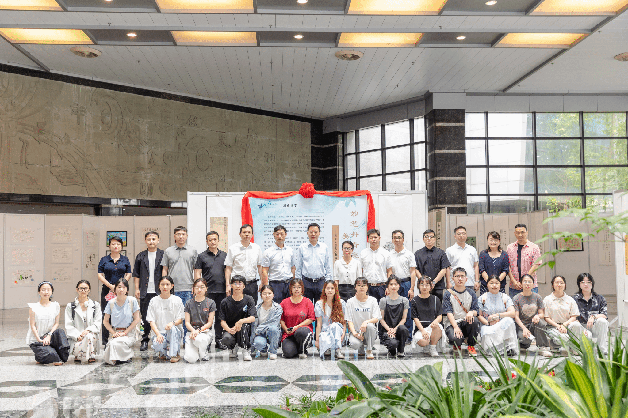 在育英图书馆大厅开展主题为“妙笔丹青亮风采,美育律动绽新颜”的书法课程作品展。温州大学副校长王尧骏,教务处处长何林李、副处长姜锐,香港六合彩官网资料