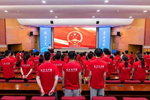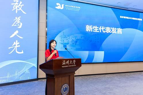汉语言文学实验班苏歆然同学作为新生代表发言,她表达了对大学生活的憧憬与决心,代表全体新生承诺将恪守院训、勤学不辍,努力成长为有理想、有本领、有担当的复合型拔尖创新人才。