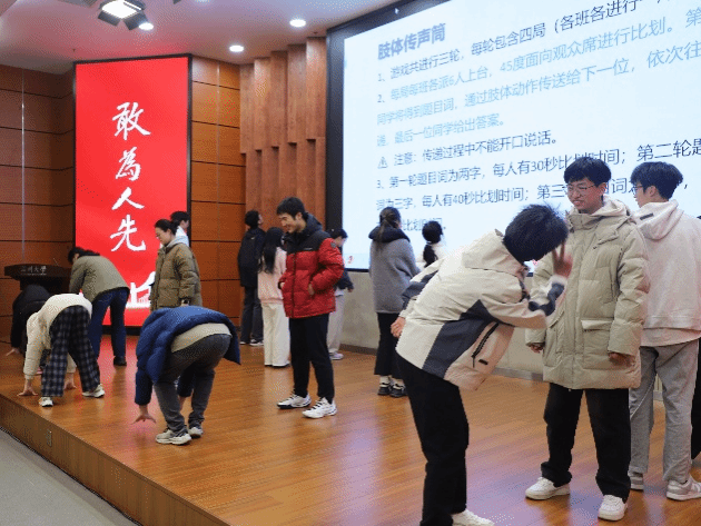 里并肩而坐的我们。四个班级依次担任“游戏策划”,各自选定一个互动环节,其他班级共同参与。这种形式不仅让每位同学都成为活动的主角,也充分展现了各班的创意与凝聚力,活动后的奖励更激发了参与的趣味性。